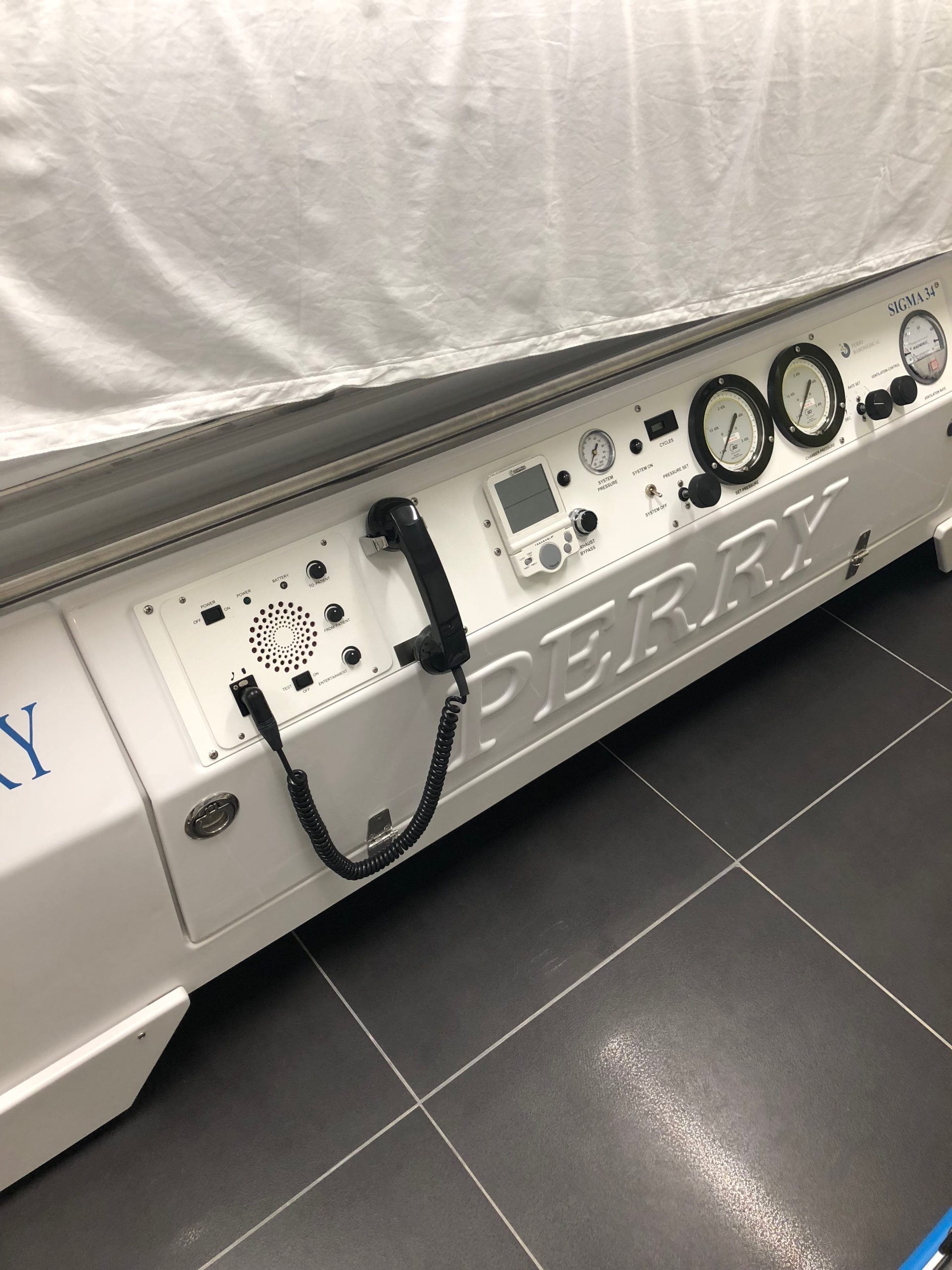 For sale is a 2016 Perry Sigma 34 Hyperbaric Chamber. This chamber has never been put into clinical use and is essentially a brand new chamber. This Sigma 34 has a dive count of just 14 cycles. It has a spacious internal diameter of 34″ and includes a deluxe patient entertainment system with a 22″ LCD Flat Panel Display. A Stryker Hydraulic Adjustable Transfer Gurney w/ Stretcher is also included.
